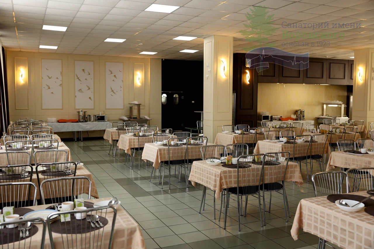 В санатории предусмотрено четырехразовое питание, которое включает в себя блюда, приготовленные исключительно из качественных и натуральных продуктов, а также диетические блюда. Прием пищи осуществляется в приятно оформленной столовой.