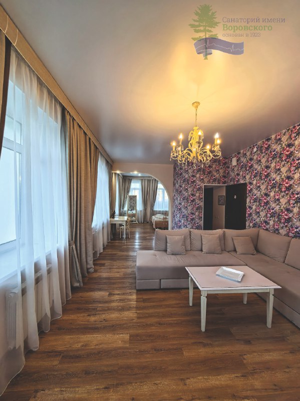 Номерной фонд санатория представлен в виде комфортабельных номеров, различающихся по количеству комнат, дизайну, площади и оснащению. В номерах есть все необходимое для комфортного проживания гостей.